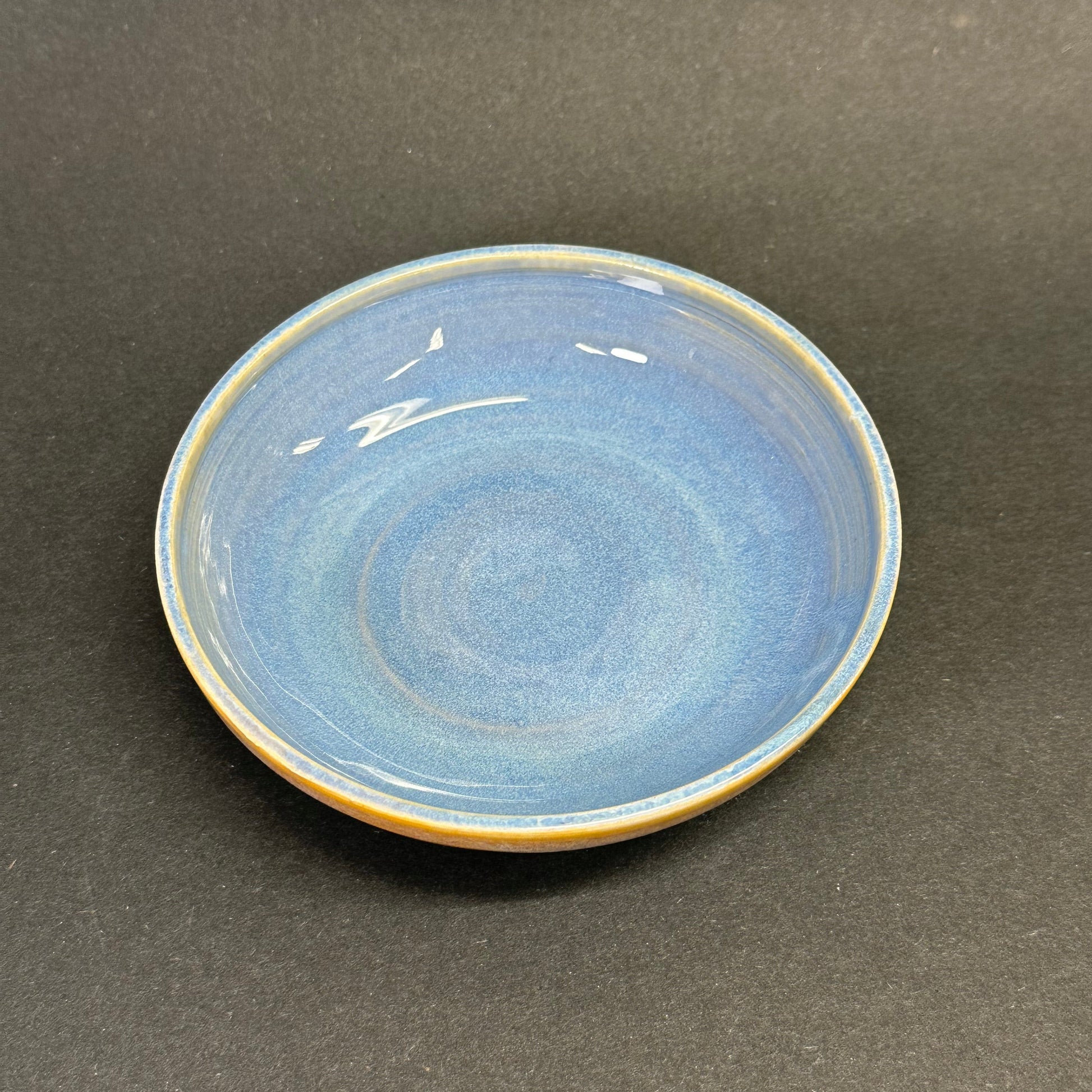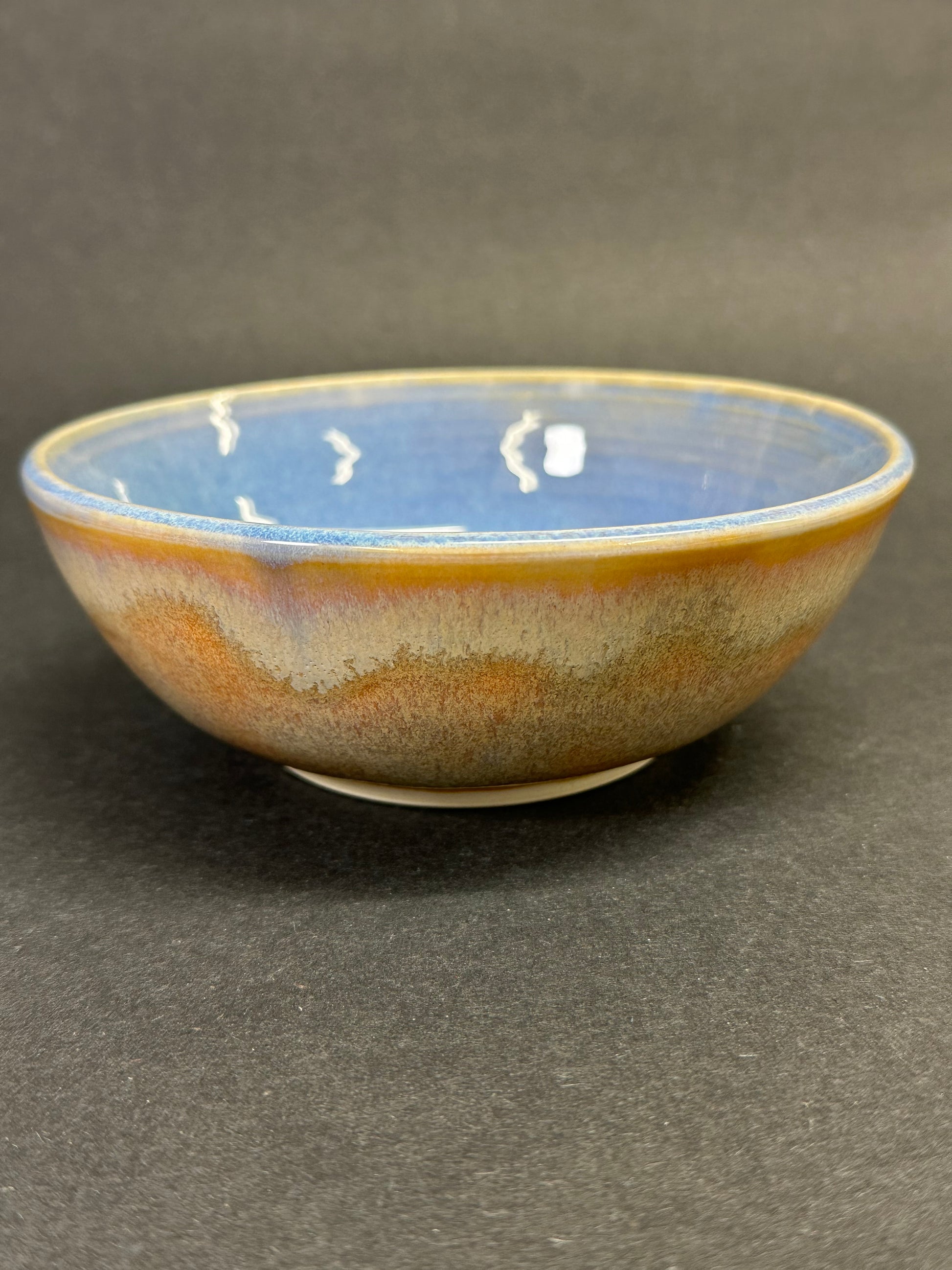 Thrown and trimmed on the wheel before being glazed in 3 different glazes to achieve this beautiful orange ocean sunset effect.